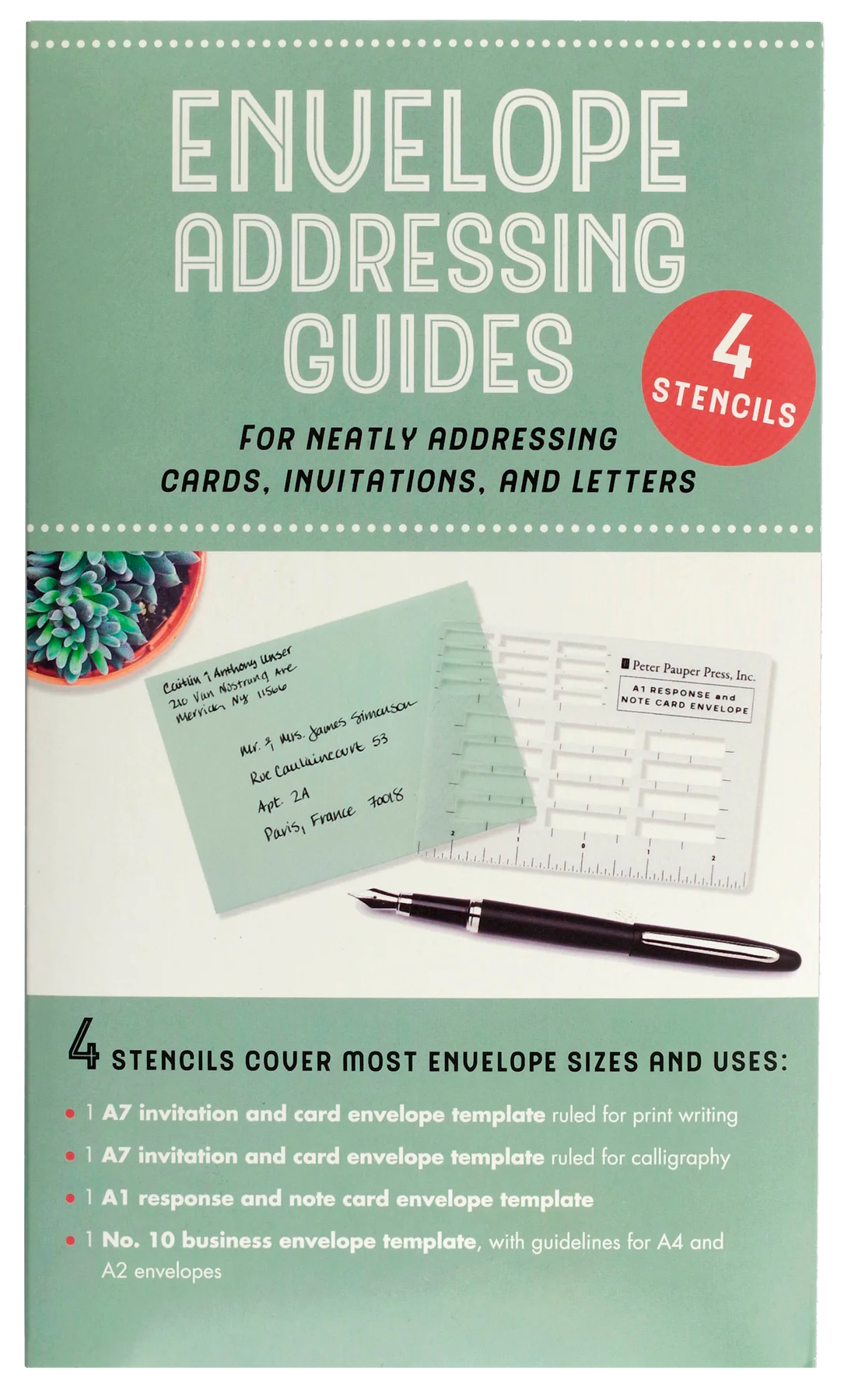 Here is a surefire shortcut to beautifully-addressed envelopes: Simply place the appropriate stencil over your envelope and address in block letters for a crisp, neat look.