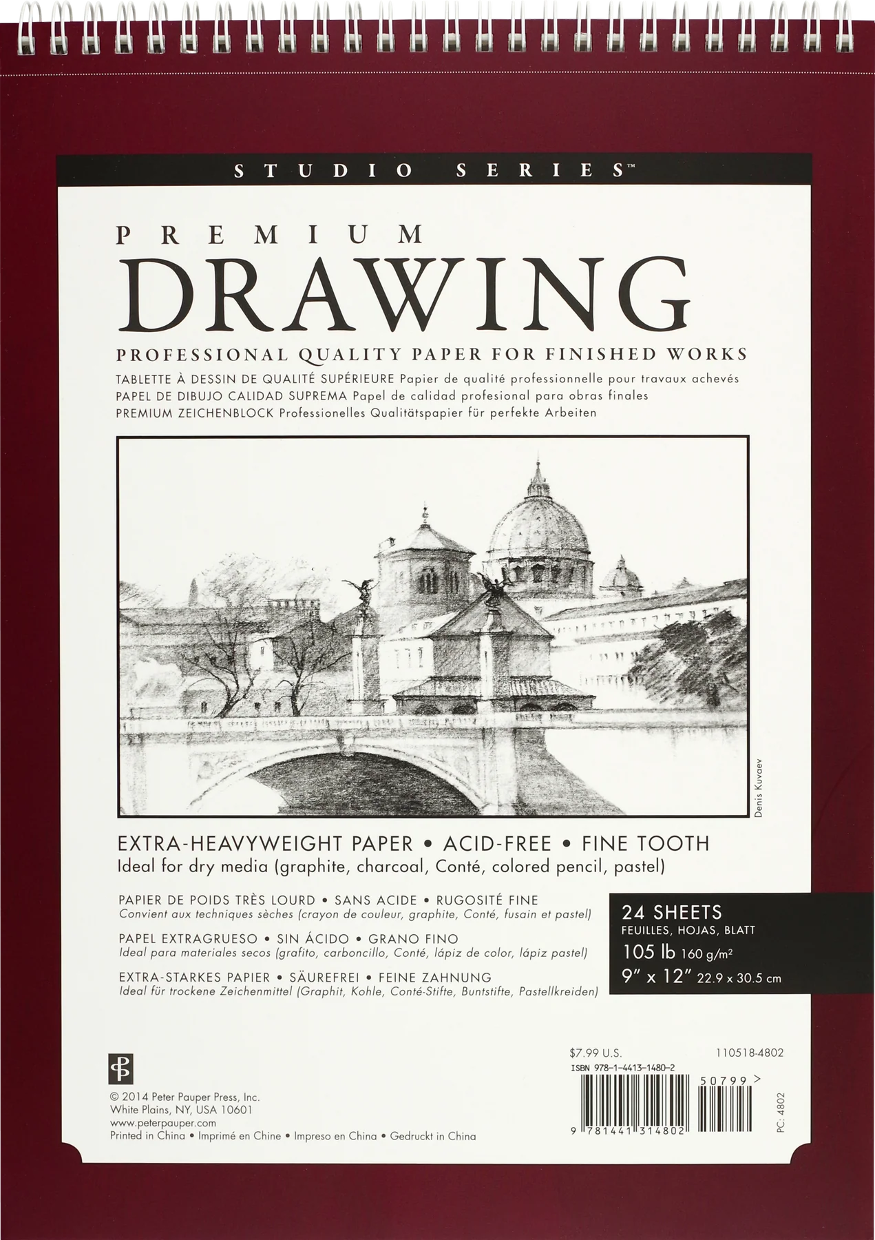 Specifically designed for finished artwork, professional quality Premium Drawing Pad features ultra-heavyweight paper with fine, even tooth.